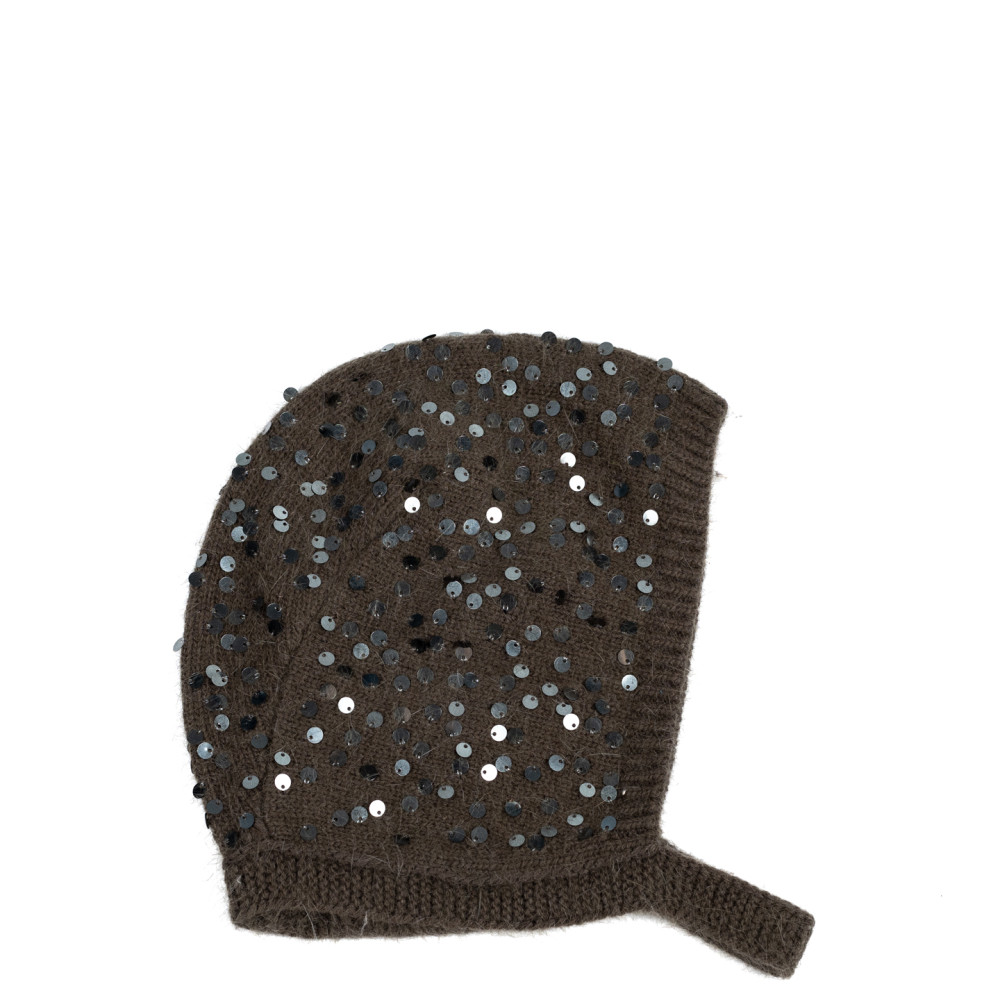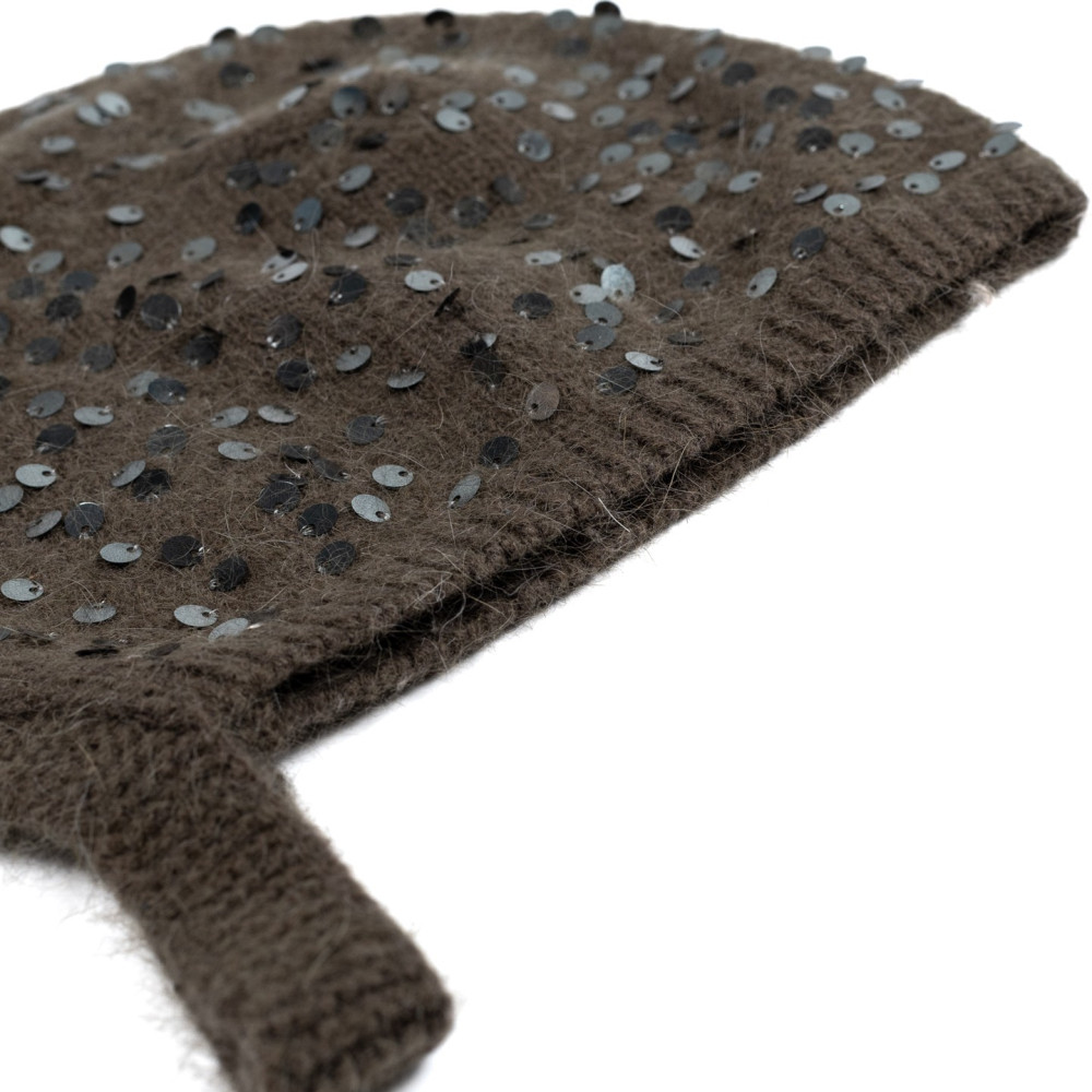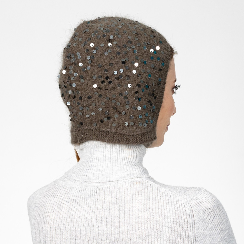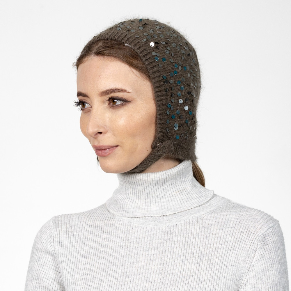 Шапка чепчик з паєтками жіноча ангора хакі ІВАННА 580-800