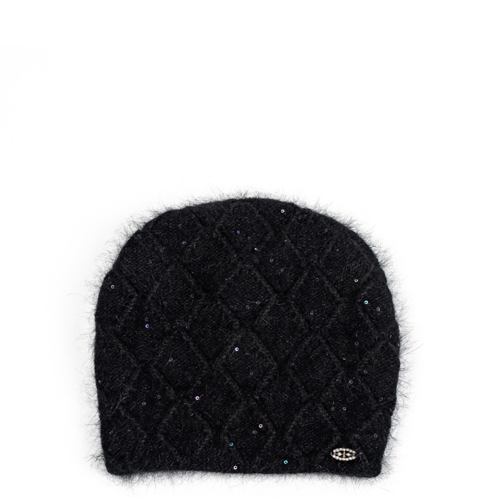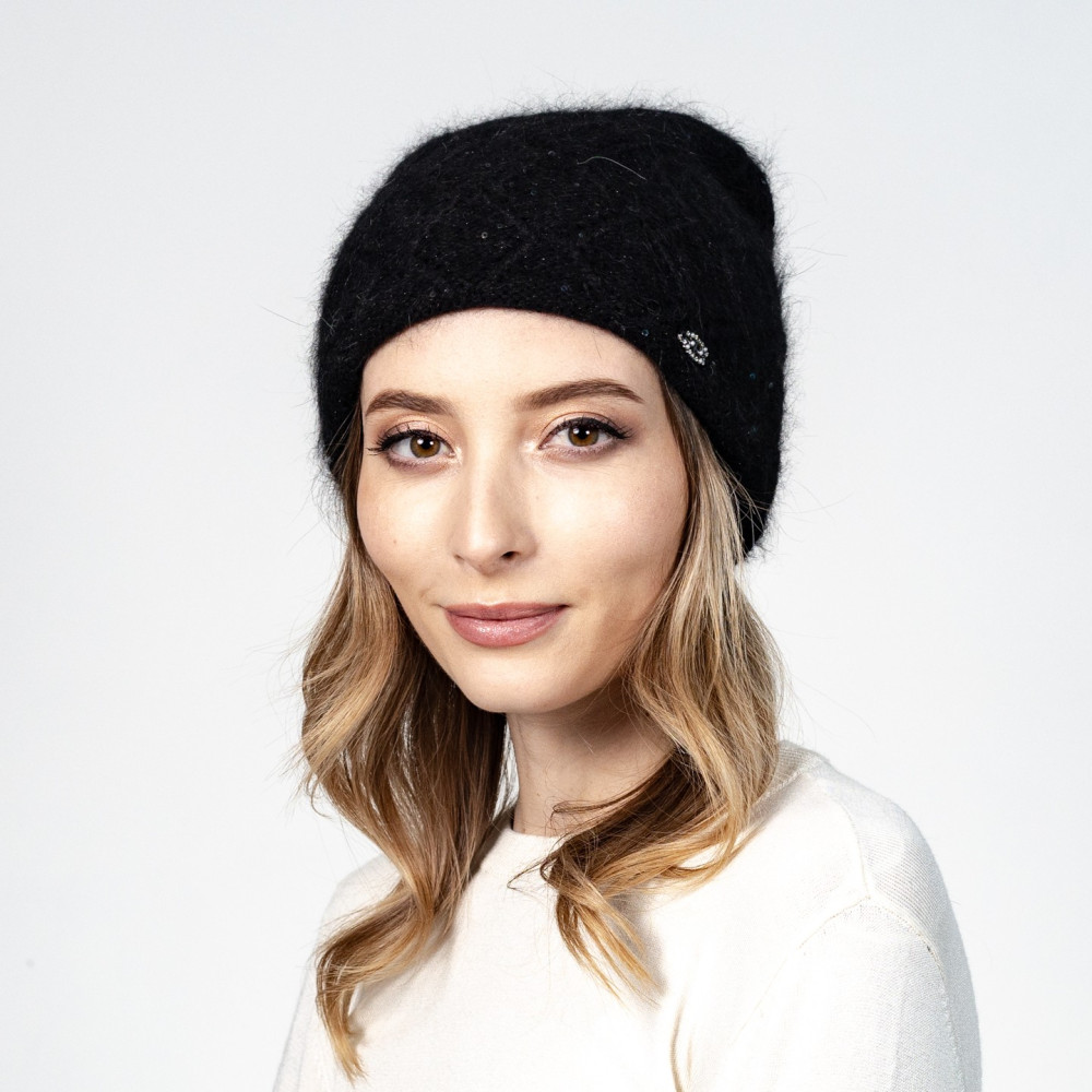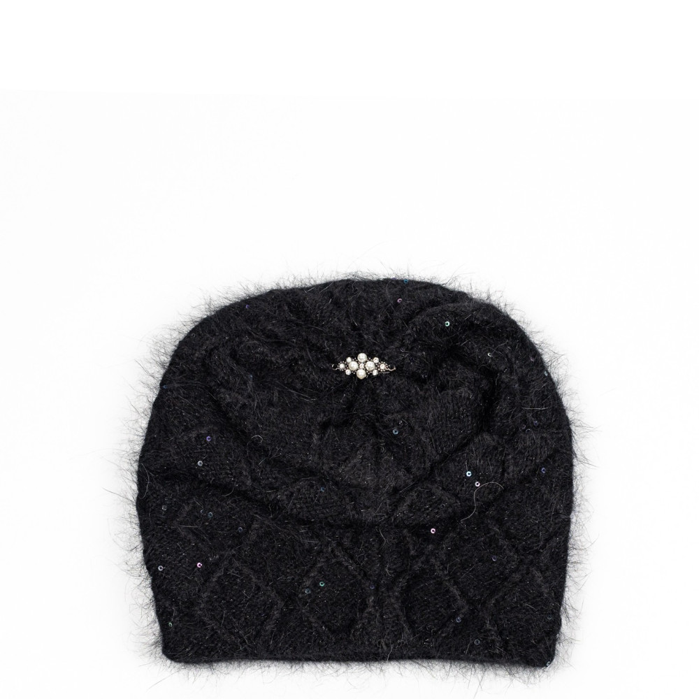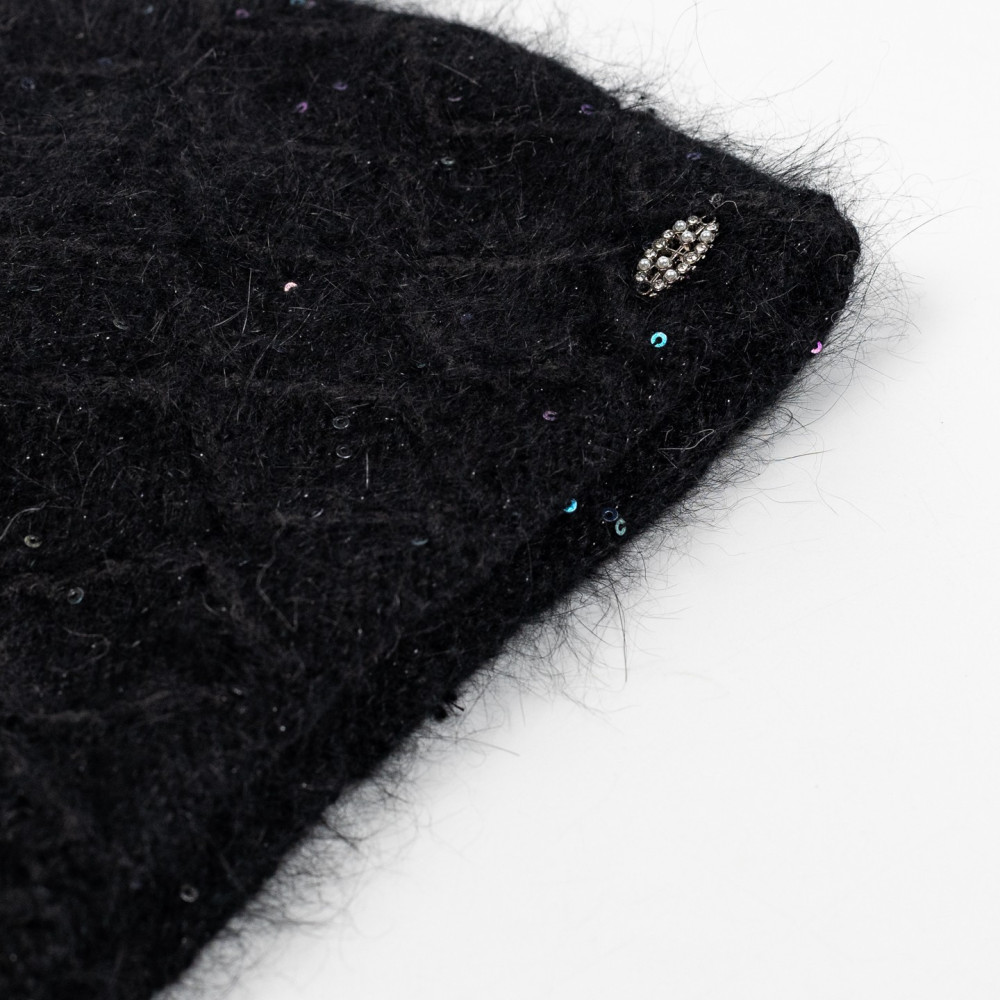 Шапка кулір з паєтками жіноча вовна з люрексом чорна РИММА 597-686