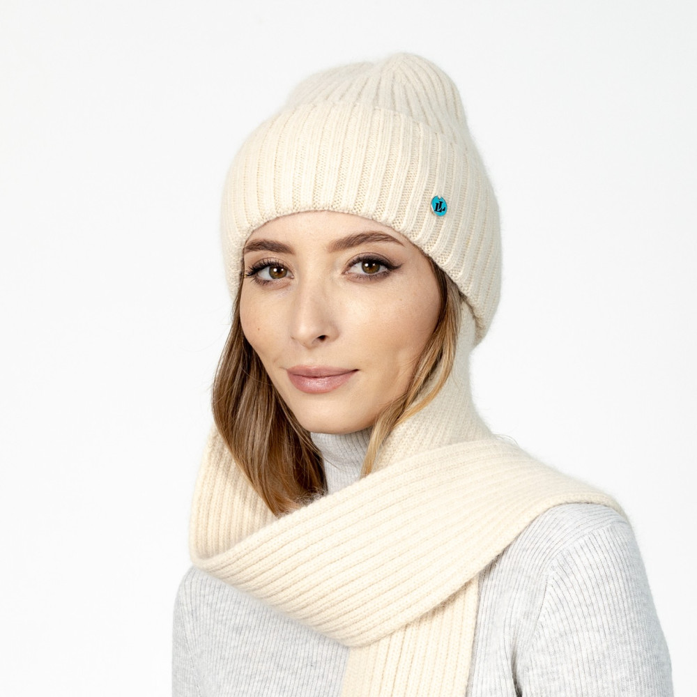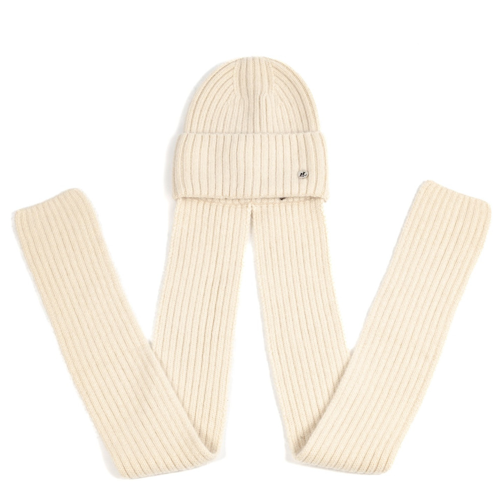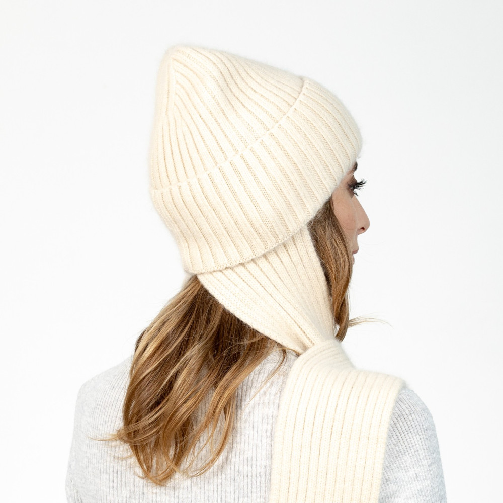 Шапка по голові з шарфом жіноча віскоза з ангорою молочна РІМА 591-813