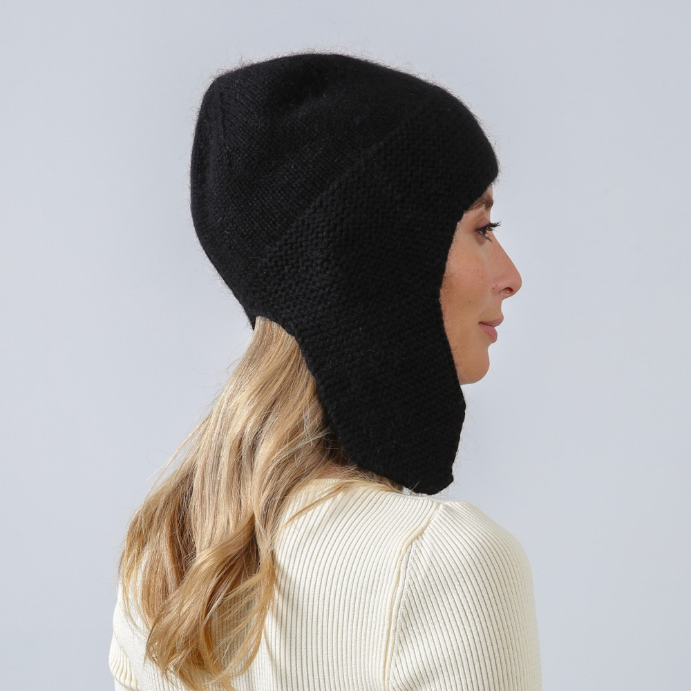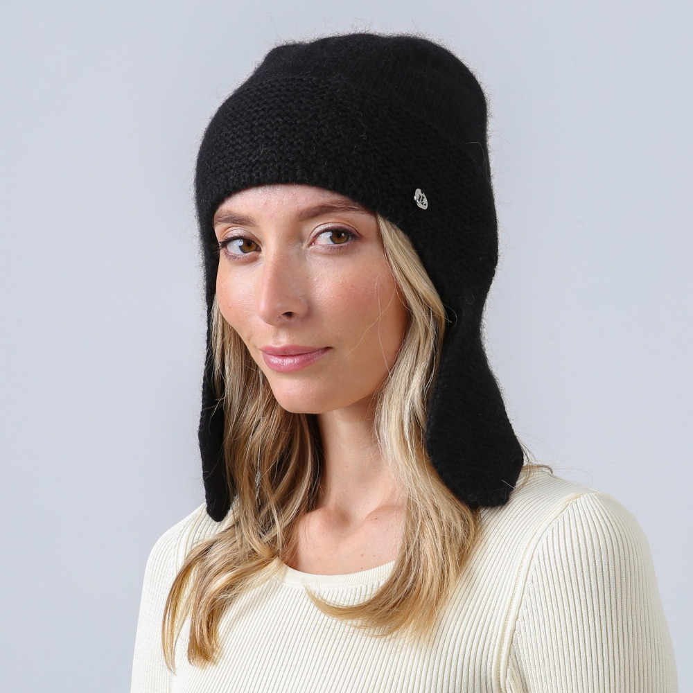 Шапка вушанка жіноча віскоза з ангорою чорна БІА 886-889