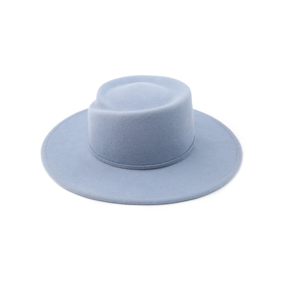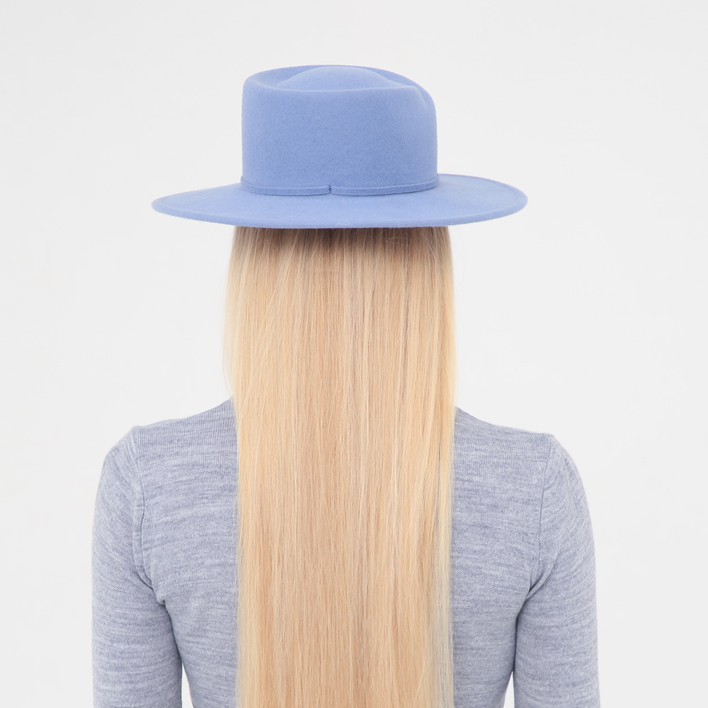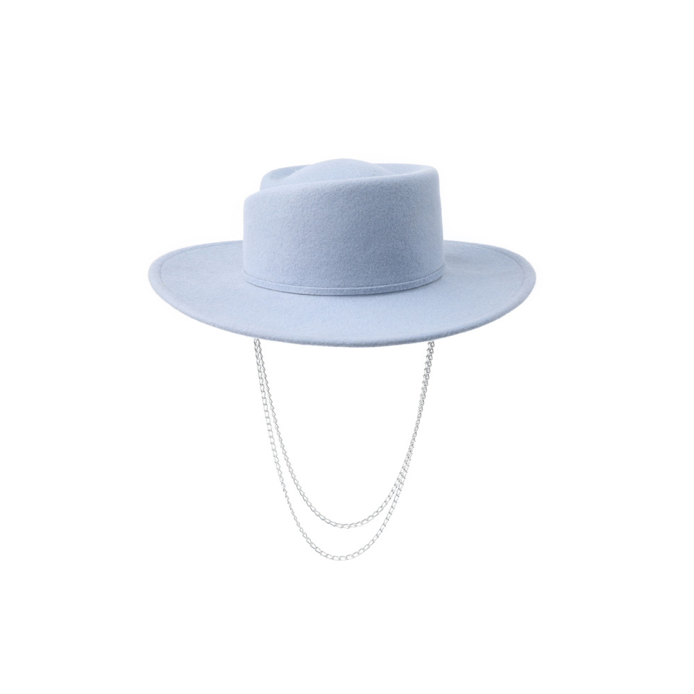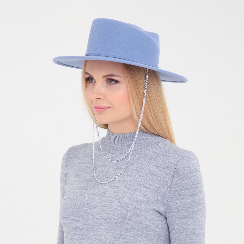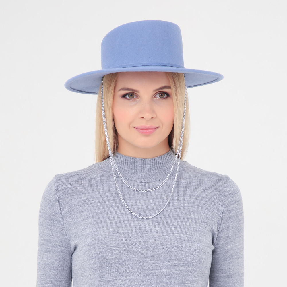 Капелюх канотьє жіночий зі срібним ланцюжок і фігурним верхом фетр блакитний ФОНГ 653-451