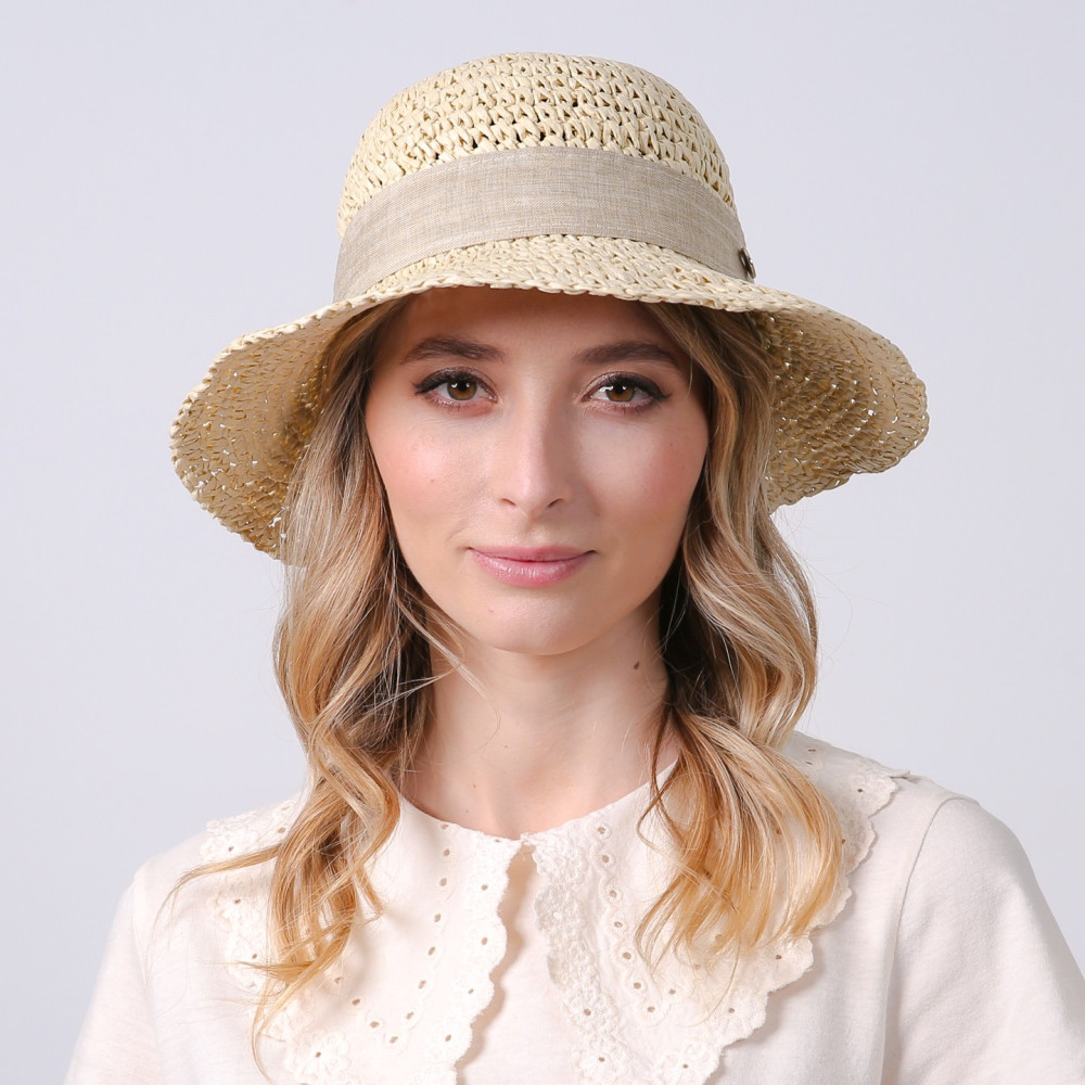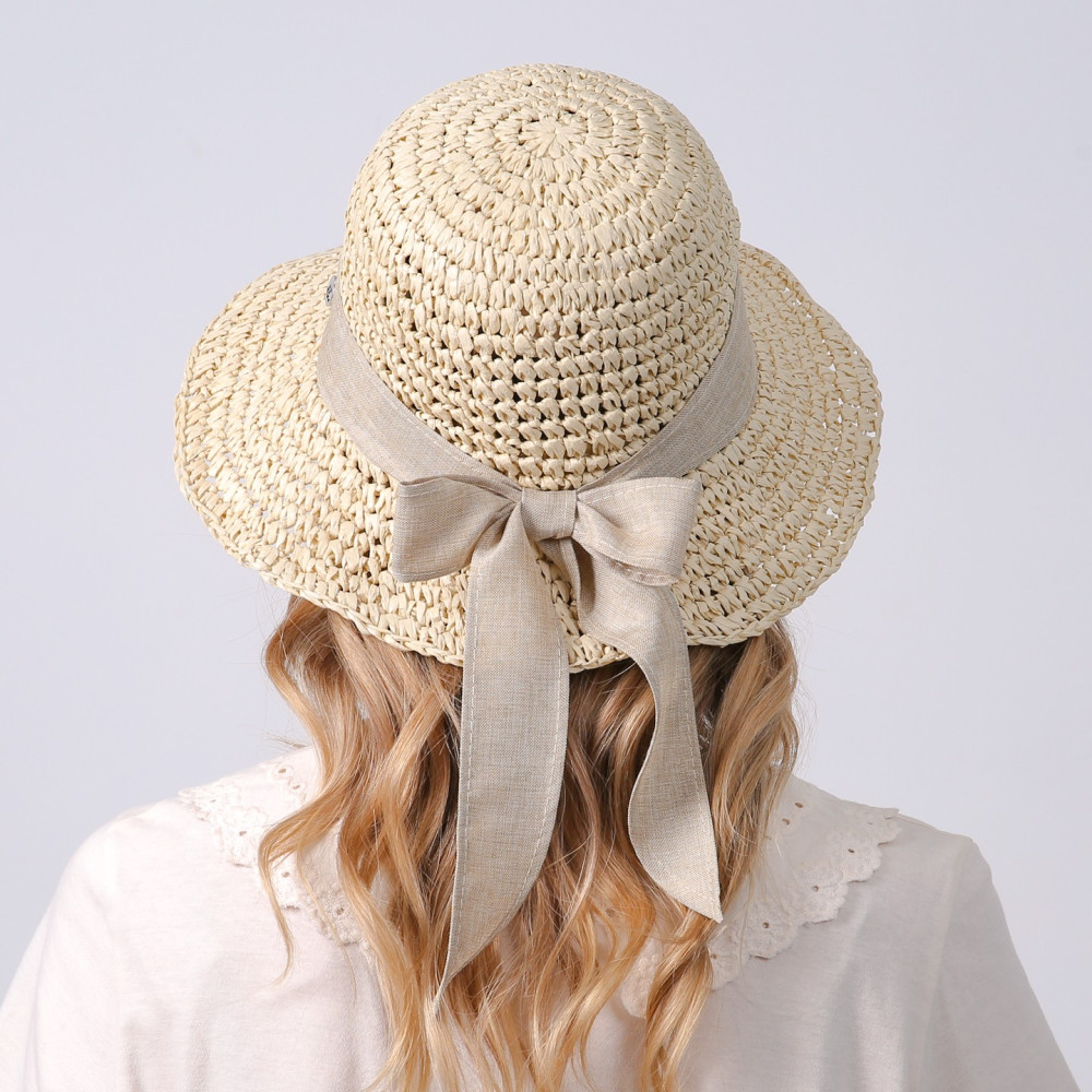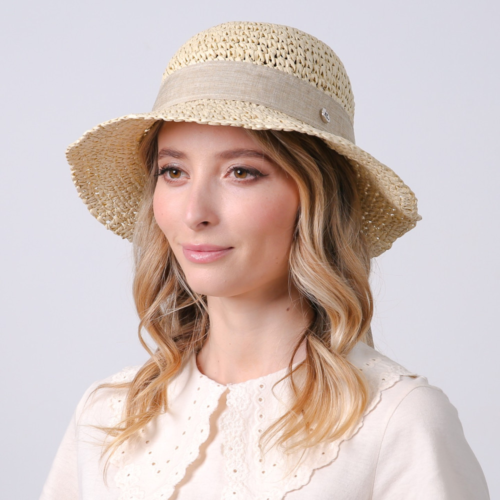 Капелюх із середніми полями жіночий в'язаний зі стрічкою-бантом папір бежевий КАТАЛІНА 734-180