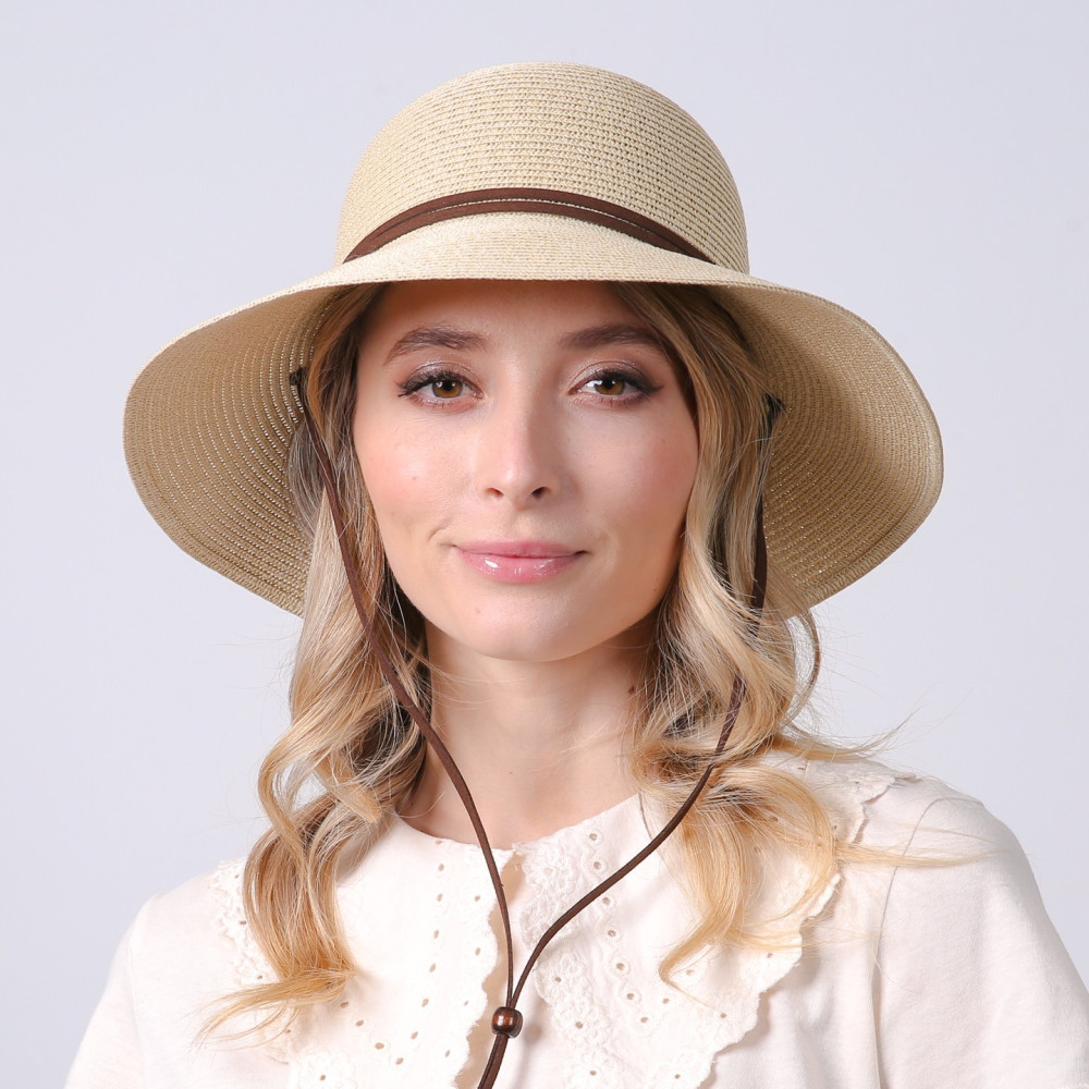 Капелюх із середніми полями жіночий з мотузкою-зав'язкою папір бежевий ДАЛІЯ 444-959