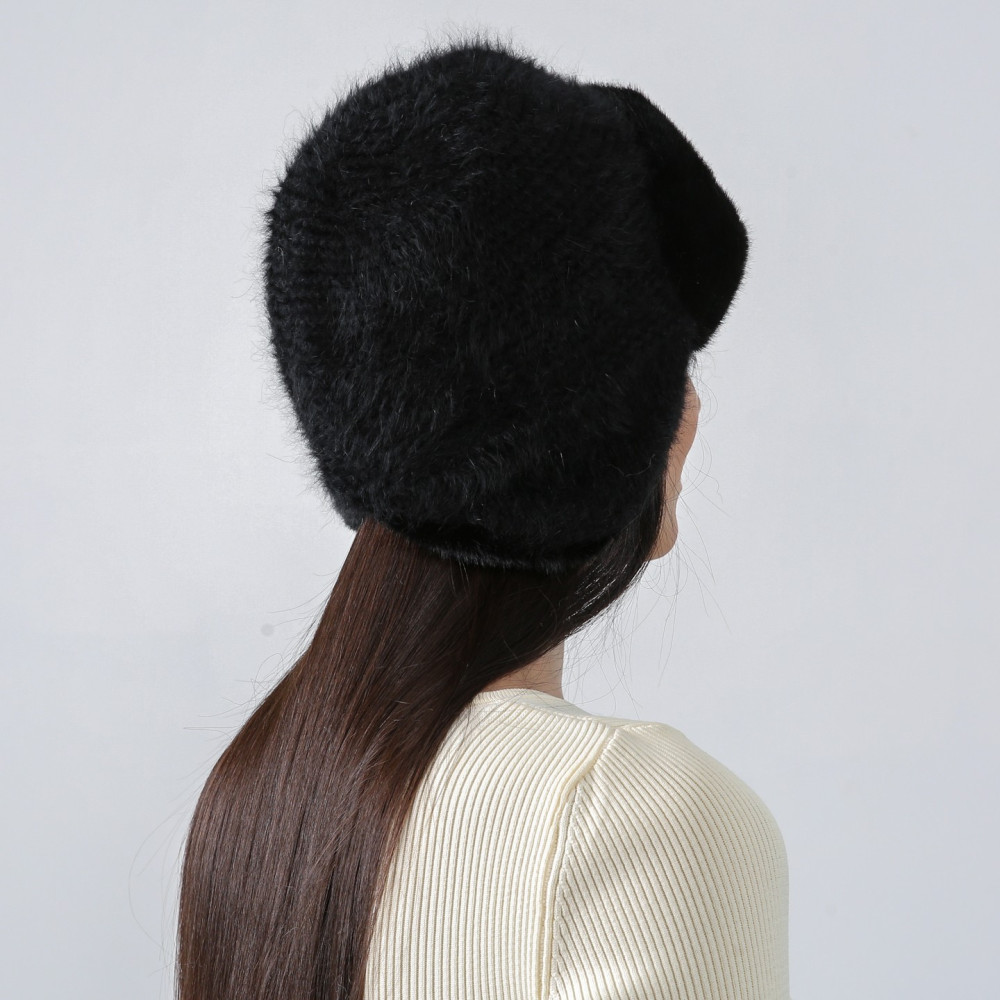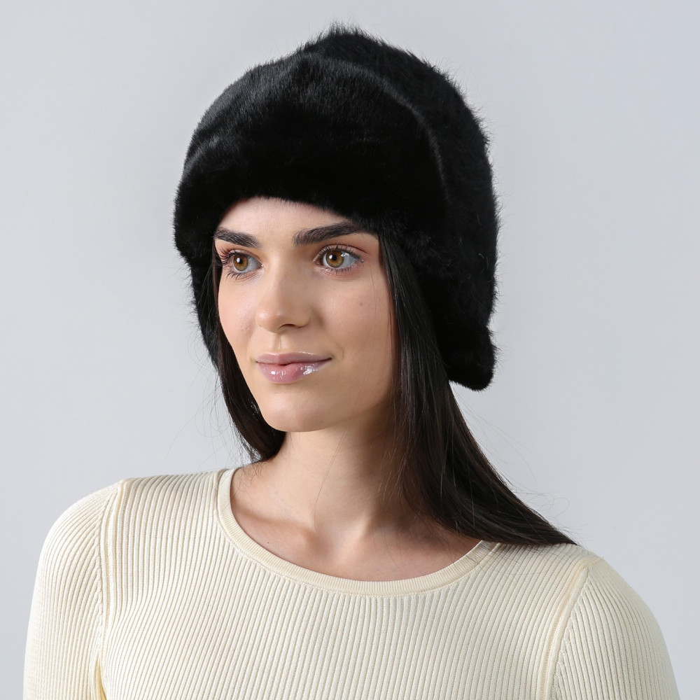 Шапка вушанка жіноча ангора зі штучним хутром чорна ДЕМА 581-166