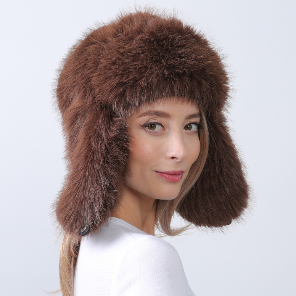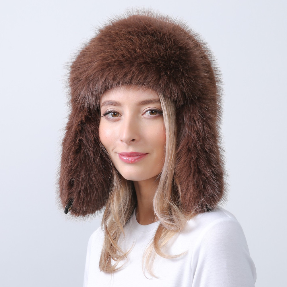 Шапка вушанка жіноча штучне хутро песець коричнева СІЛЬВІЯ 676-008