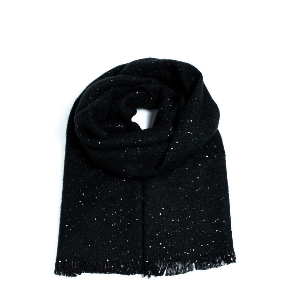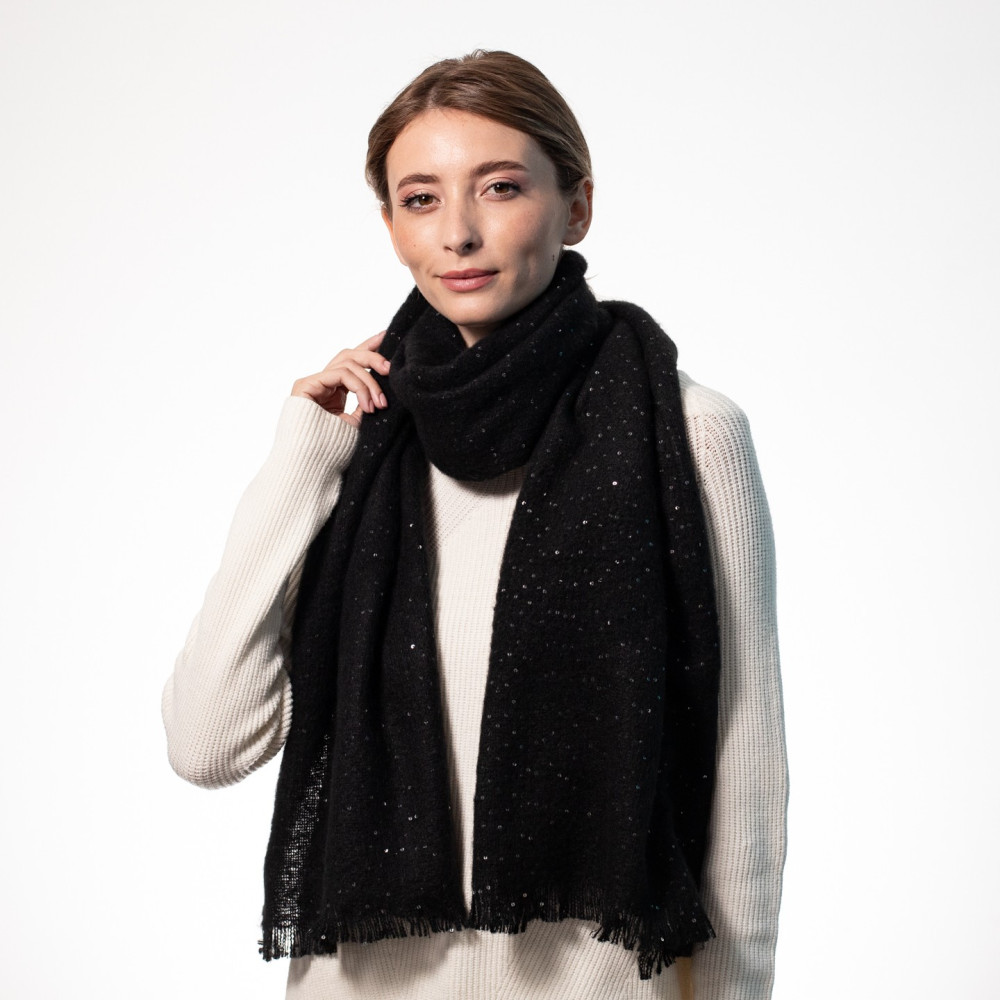 Палантин з паєтками жіночий однотонний кашемір чорний ЛУНА 555-310