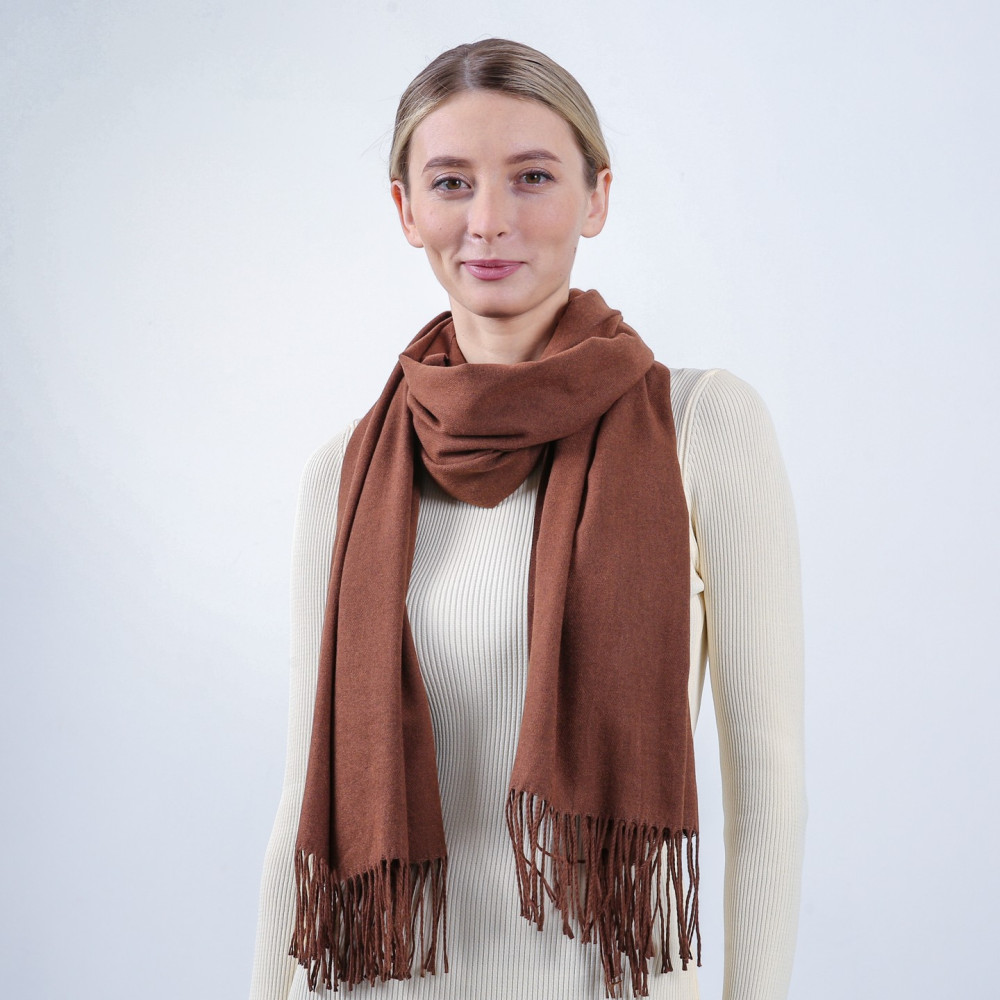 Палантин жіночий однотонний кашемір коричневий IDANA 554-573